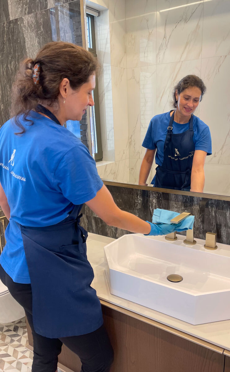 Уборка саун, бань и бассейнов осуществляется с использованием специальных профессиональных средств, подобранных с учетом поверхности и загрязнений.